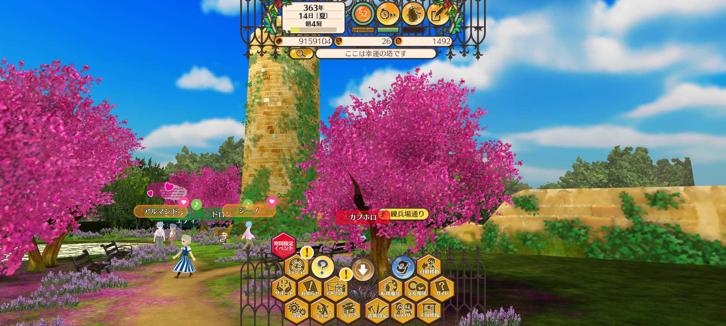 この2人は仲人していたものの、朝で油断していたのですが、たまたまジルコンビット回収で幸運の塔に通りかかったらちょうど告白タイミングでした。でも、場所がおかしなことに。