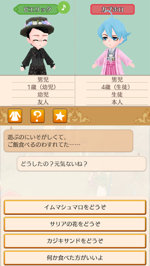 お腹空かせた子がいたので、とりあえず選択肢に出てたサリアの花あげてみた。