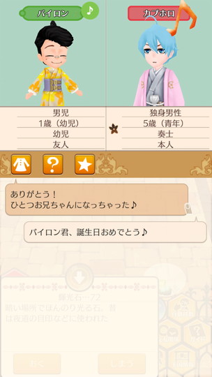 糸目と髪の毛が特徴的なバイロンくん。同じく糸目なお母さんセルマさんの第2子。髪型に負けないよう太いアホ毛をつけてみましたが、対抗できたのでしょうか?