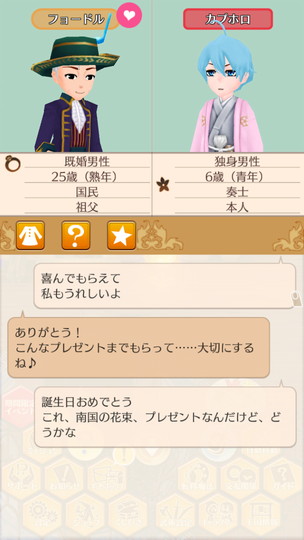 おっと、アルマンドくんに花束渡すの忘れてた。大抵その場で渡してるけど、モイラちゃんとデート行っちゃったんだったかな?