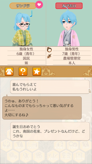 ちゃんと妹に花束を忘れないカプホロくん。なお、9日がコゼットちゃんの誕生日と今更思い出した模様(フィルくんと同じ日)。