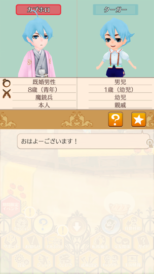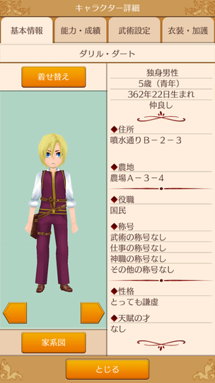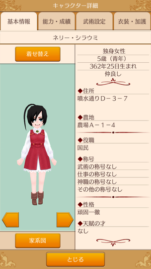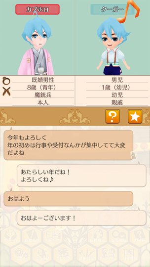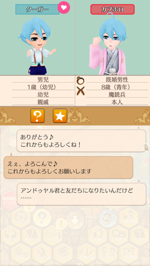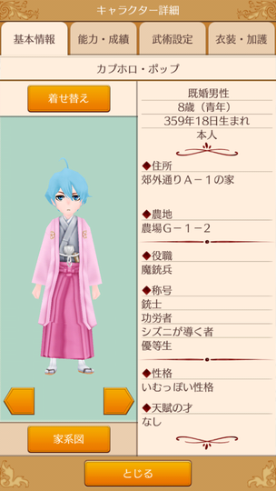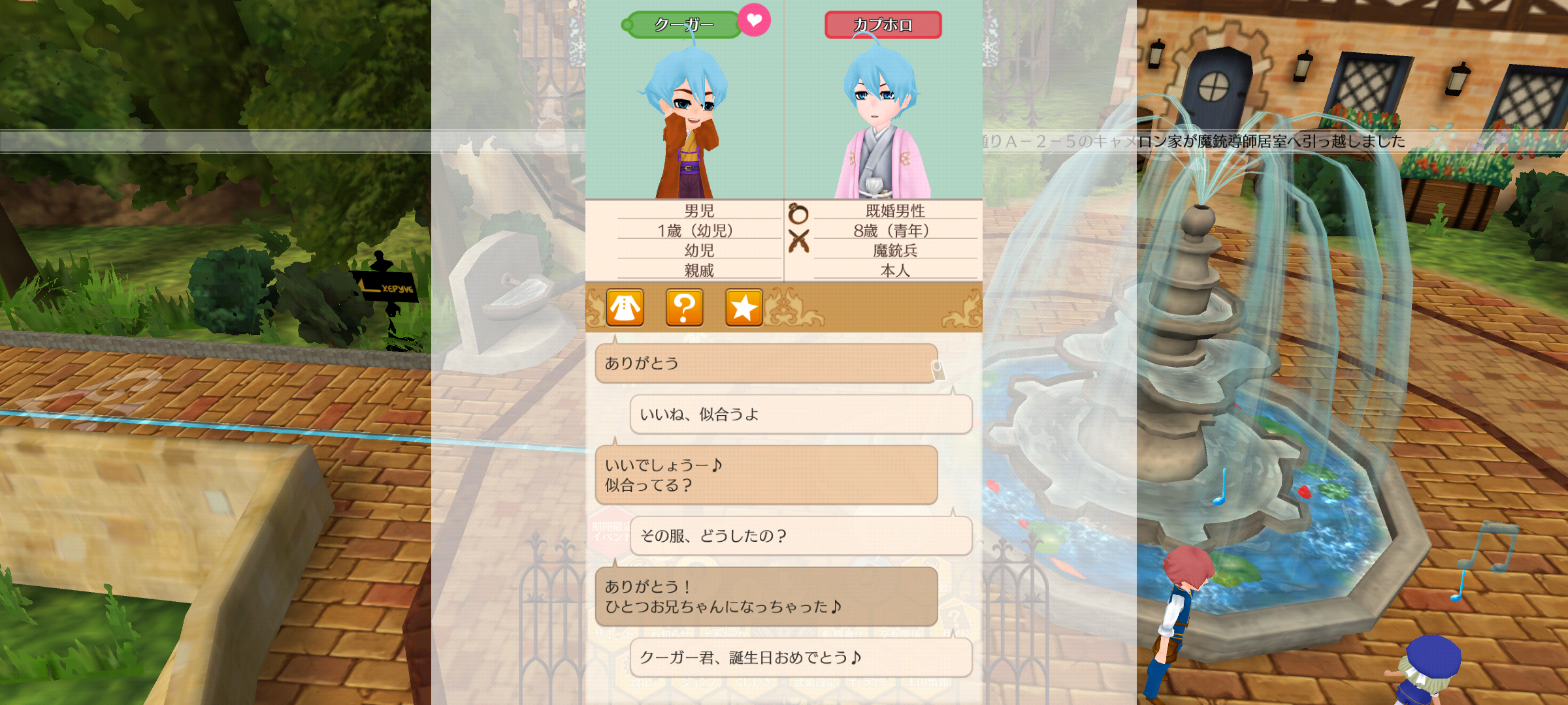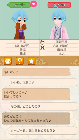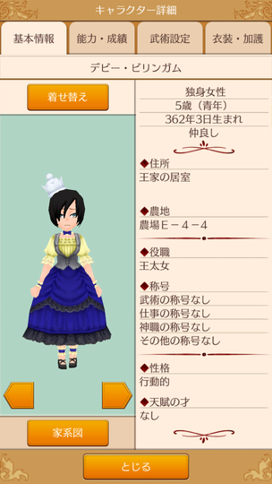 デビー殿下が立派な王太女様に。ダリルくんがデビー殿下の王配候補。ラファエラちゃんとロブくんもカップル候補。ベルナルダンくんも成人したので、最近亡くなったおじいちゃんの衣装を継承。ネリーちゃんももう成人なんですね。なんとなくパイアスくんより初代ハナさん寄りになったので、イメージ的にコークの服を。ちなみにベルナルダンくんとネリーちゃんは別に仲人とかはしてないです。でも性格は一致。