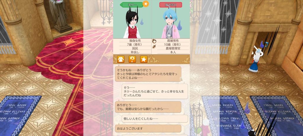 アデリンちゃんや2人の孫に囲まれながらガノスに。ノルくんが入国したのは355年の9日。リアルでおよそ半年前ですが、もうそんなに経つんですね。シラウミ家の始祖ノルくん、お疲れ様でした。これからもガノスからシラウミ家を見守ってあげてください。