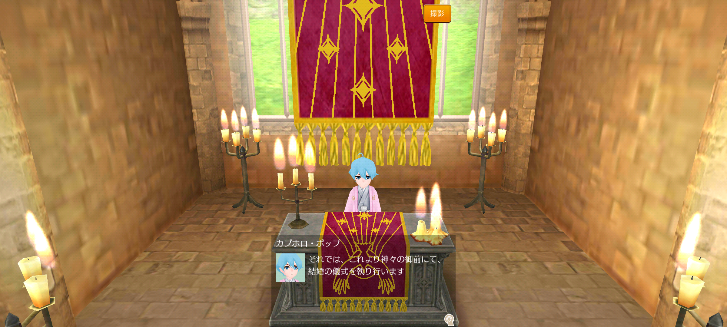 おヒゲのドナートくんと山岳次子のパオラちゃんの結婚式。長い間笑顔の神官から無表情系の神官への交代ですが、しっかりお仕事したカプホロくんでした。