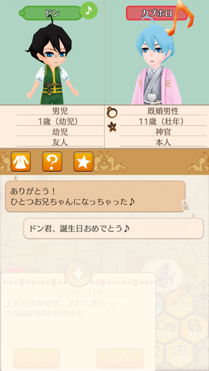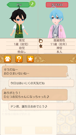 昨日のキアラ元王女の子アルフレッドくんに続いてテレーゼちゃんの子ドンくん。アルフレッドくんと同じ黒髪チョリンな男の子に育ちました。今日から君たちは黒髪アホ毛チョリンコンビだ。
