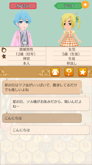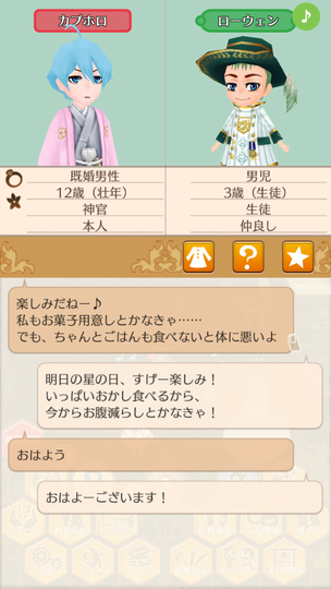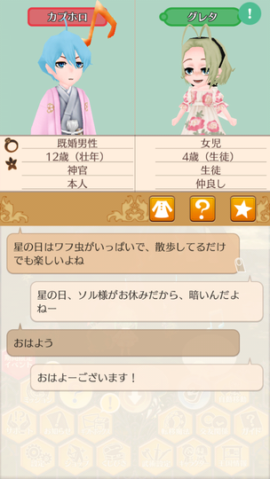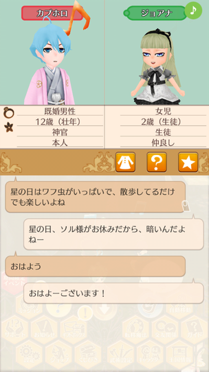 もうすぐ星の日な19日から。 朝からびっくりコゼットちゃん 朝からくさいエレモちゃん。 お手伝いしてくれるクラリスちゃんかわいい しょーらーゆーぼーですね。 今日はカプホロ先生の授業 ちゃんとみんな星の日のお勉強。 みんな楽しみ星の日 朝からお腹減らすバグウェルっ子ローウェンくん、絶対明日まで持たない。まあ、学校でお昼ご飯必ず食べるんですけどね。(ローウェンくんは上のいただきますのところで食べてる) 今年は2人とも星の日前日4コマ達成 2人ともやる気満々です。