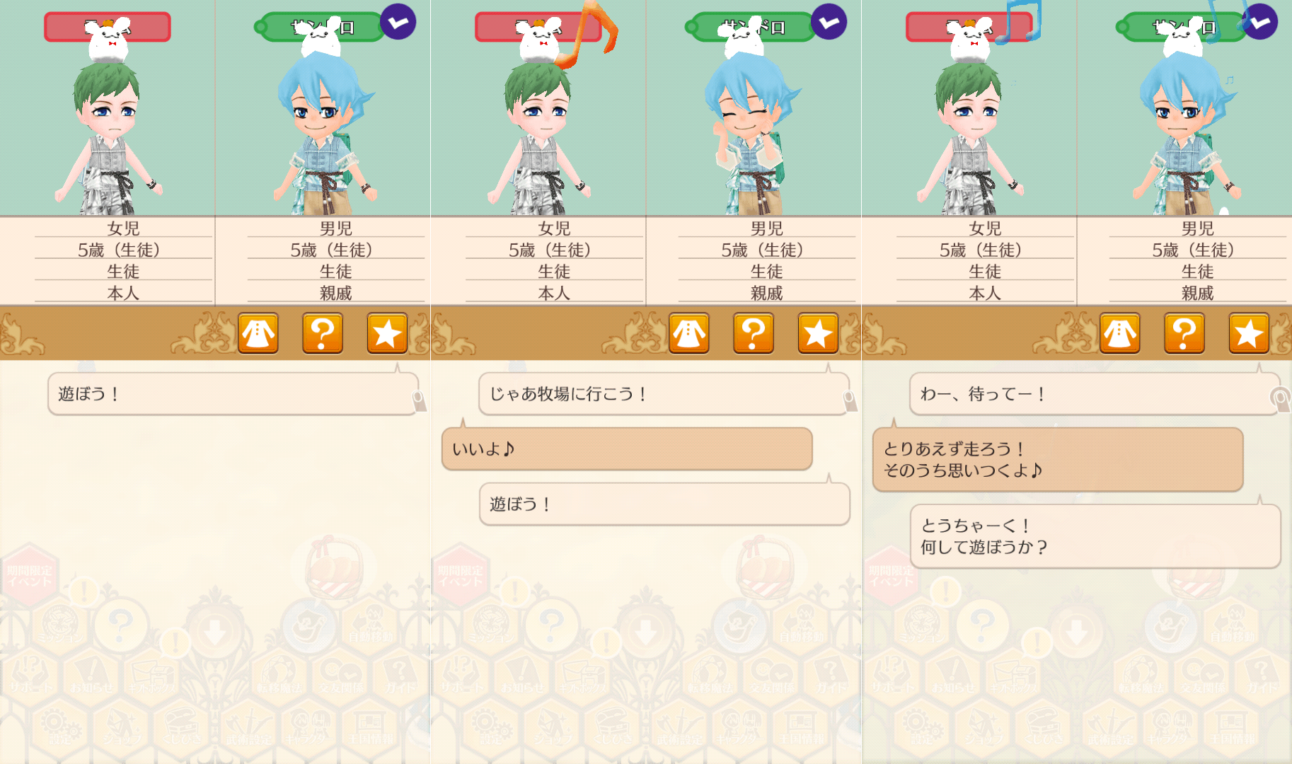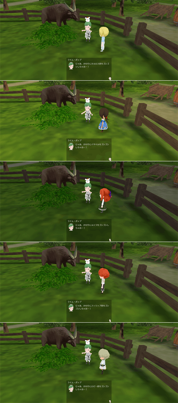 農場に一緒にハーブ摘みに向かうホウショウ兄とイフィゲニアさんを追跡。しかしもうすぐイフィゲニアさん成人から1年経つけど、明らかに仲が良いのに進展しない2人。かつてのへリーヌ・イヴォンヌ夫婦を思い出します。