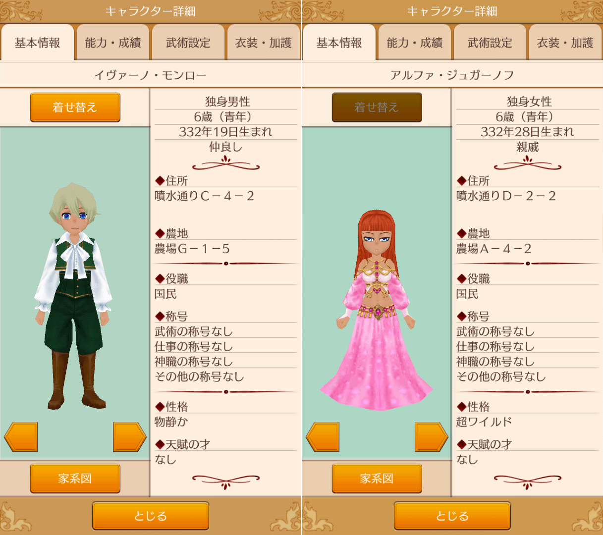 こちらは末裔ちゃんのイヴァーノ偽王太子、イヴ伯母さんの子アルファさんのカップル