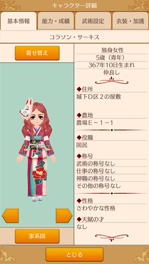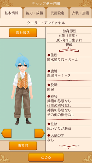 アルマンドくんの子クーガーくんが成人。青髪チョリンがメガネで知的な感じに。そして、リンゼイちゃんの子コラソンちゃんも成人。伝統の衣装が似合ってますね。
