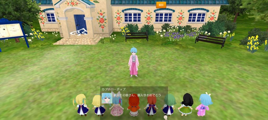 クラリスちゃんとレナータちゃんが入学。代表のパロマちゃんの帽子、いつか使いたいと思ってやっと使ってみたのですが、かわいいはかわいいけど、こういうときに顔見えないのは欠点だなぁ。