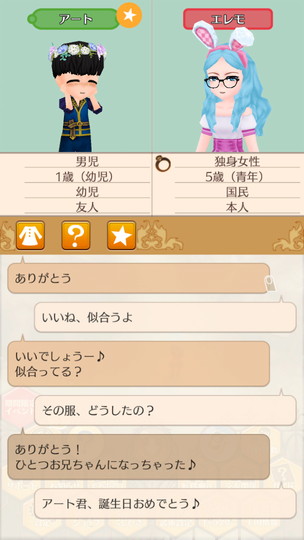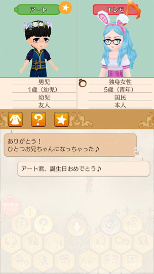 完全にお母さん寄りのアートくん、王子の子ということで王家の服着せようと思ったら、キアラちゃんの子とテレーゼちゃんの子に全部使っちゃってたことに気づいたという。