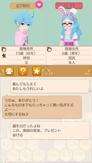 ゲルダちゃんがイーニアスくん連れて滝の方に。まだ付き合ってないのですが、どうなるか?ところで、イーニアスくんはペネロペちゃんと仲人してたので、一旦仲人休止。さてイーニアスくんを射止めるのはどちらか。