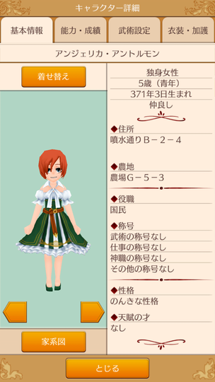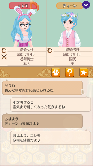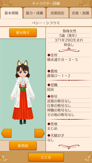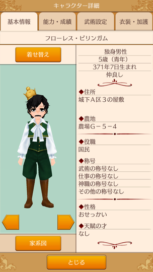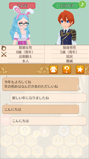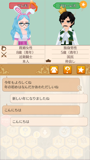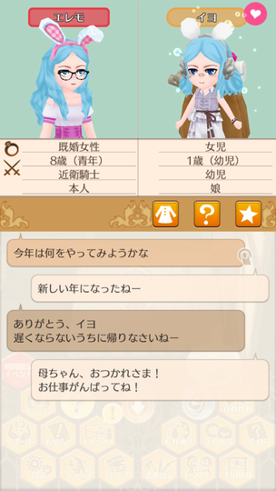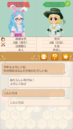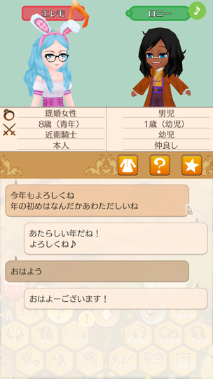 今年はフローレス殿下が成人なのですが、あのかわいかった殿下が立派なヒゲ生やしちゃって…殿下と仲人してたベルナルダンくんの子アンジェリカちゃんも成人。無事結ばれて王家に再びオレンジ髪をもたらすことができるかどうか。シラウミ家のベシーちゃんも成人。立派なお狐様に。