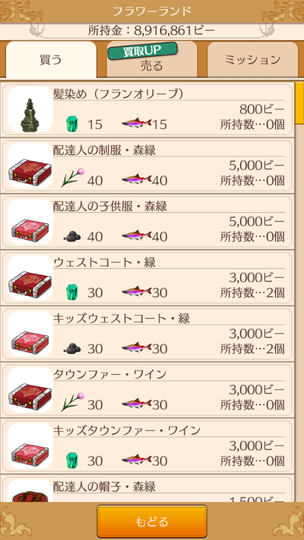 元からウェストコートとイムイム帽子と家具は持ってるので、配達人シリーズやタウンファー多めの予定。その中でも大人の服が不足しがちなので、大人の服を多めに交換予定。