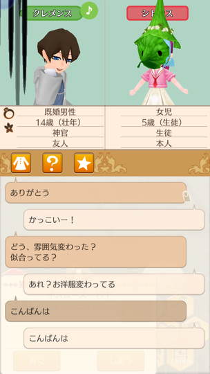 この日、ヴェロニクちゃんの祖母ベシーさんが危篤だったのですが、同時に神官さんも交代していました。グラエム神官長らくお疲れ様でした。そして、新しい神官はクレメンスさん、つまりアビーさんと夫婦神職ということになりました。これからよろしくお願いします。