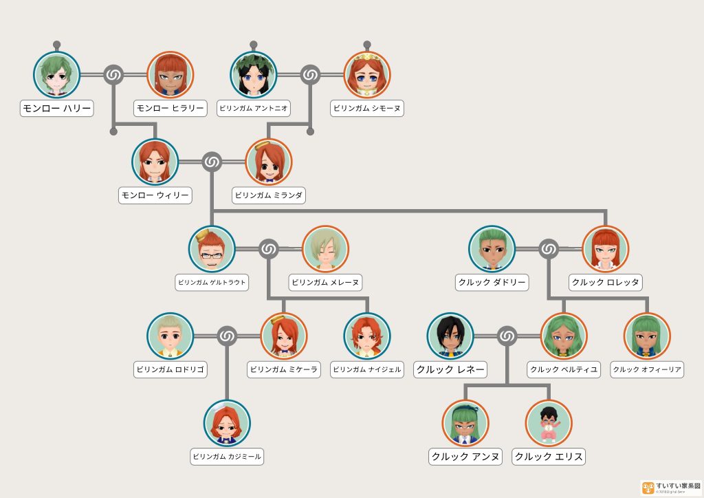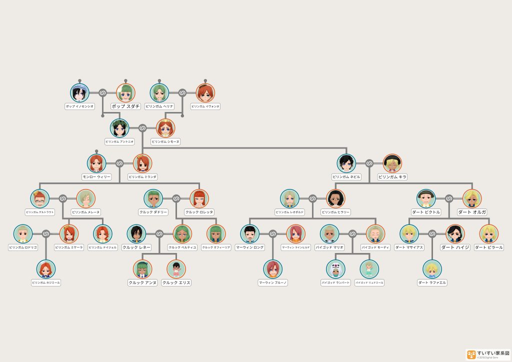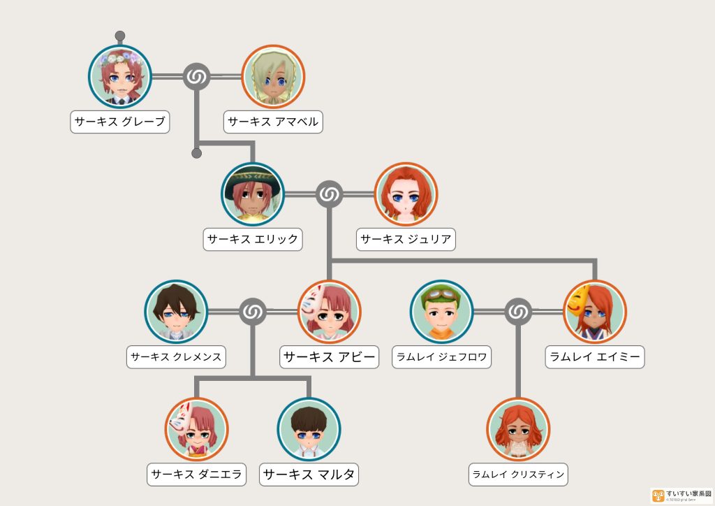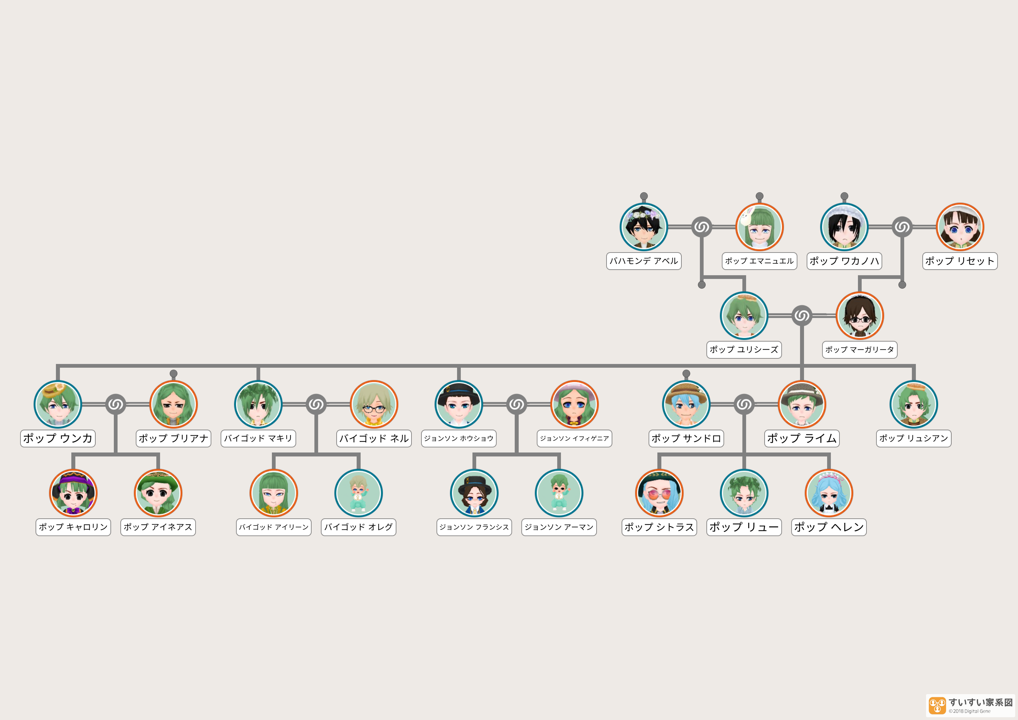 シトラスちゃんが成人したので、この時点での家系図をまとめておきます。まずはポップ家から。