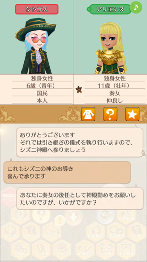 久々の引き継ぎでしたが、ようやく奏女就任。もちろん、目指すのは巫女ですし、来年から魔銃兵目指すので、年末までには引き継ぐ予定です。そして、フョードルくんと安心して付き合うことができますね。