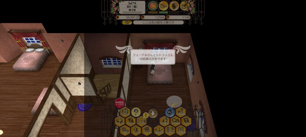 ヘレンちゃんと浴場と邸宅を往復してたので全く話しかけられませんでした。プルトだったら見事な遅刻ですね…いよいよ結婚式。