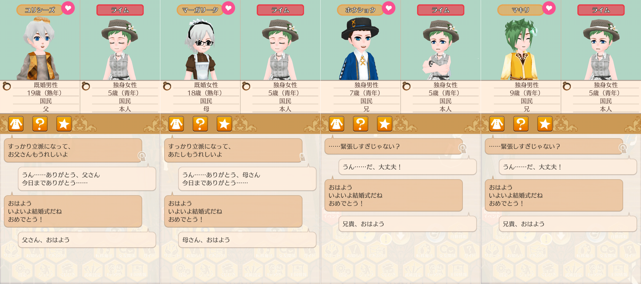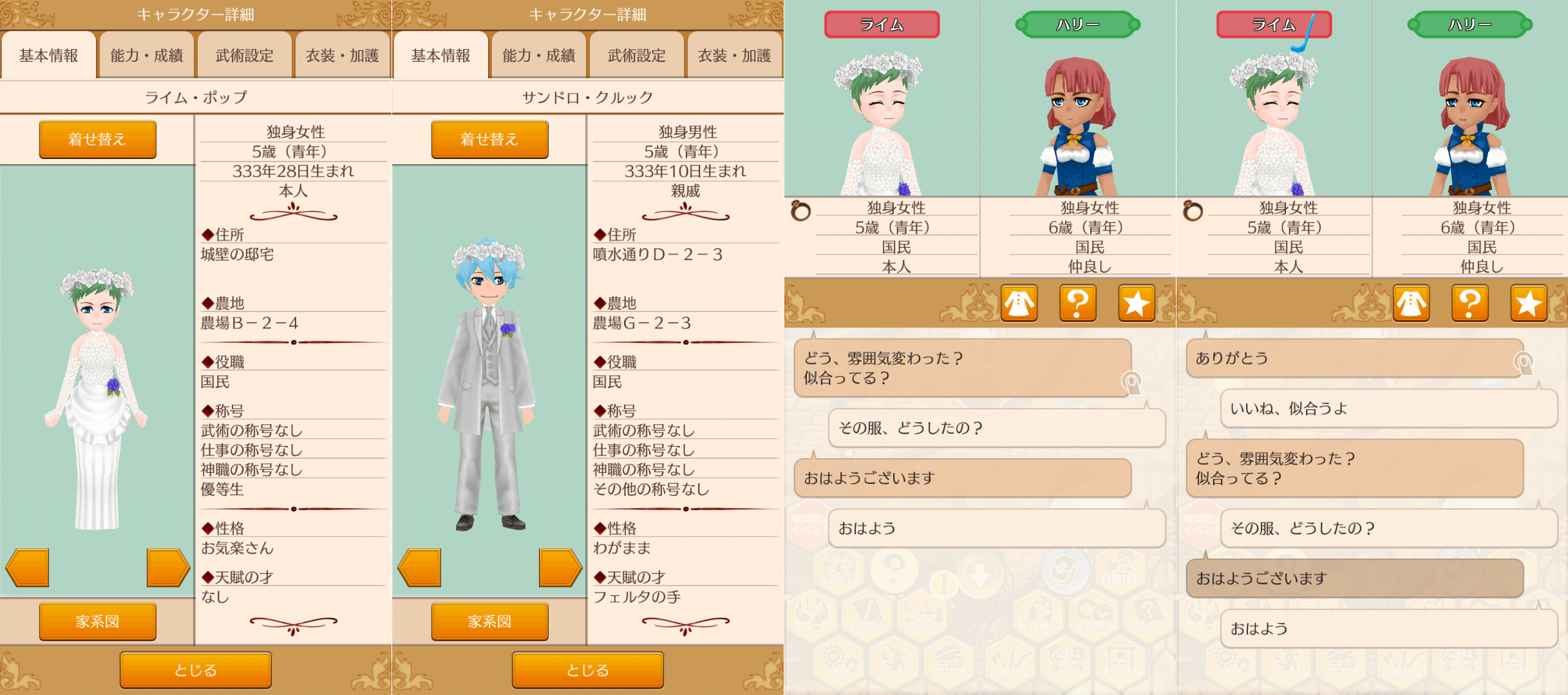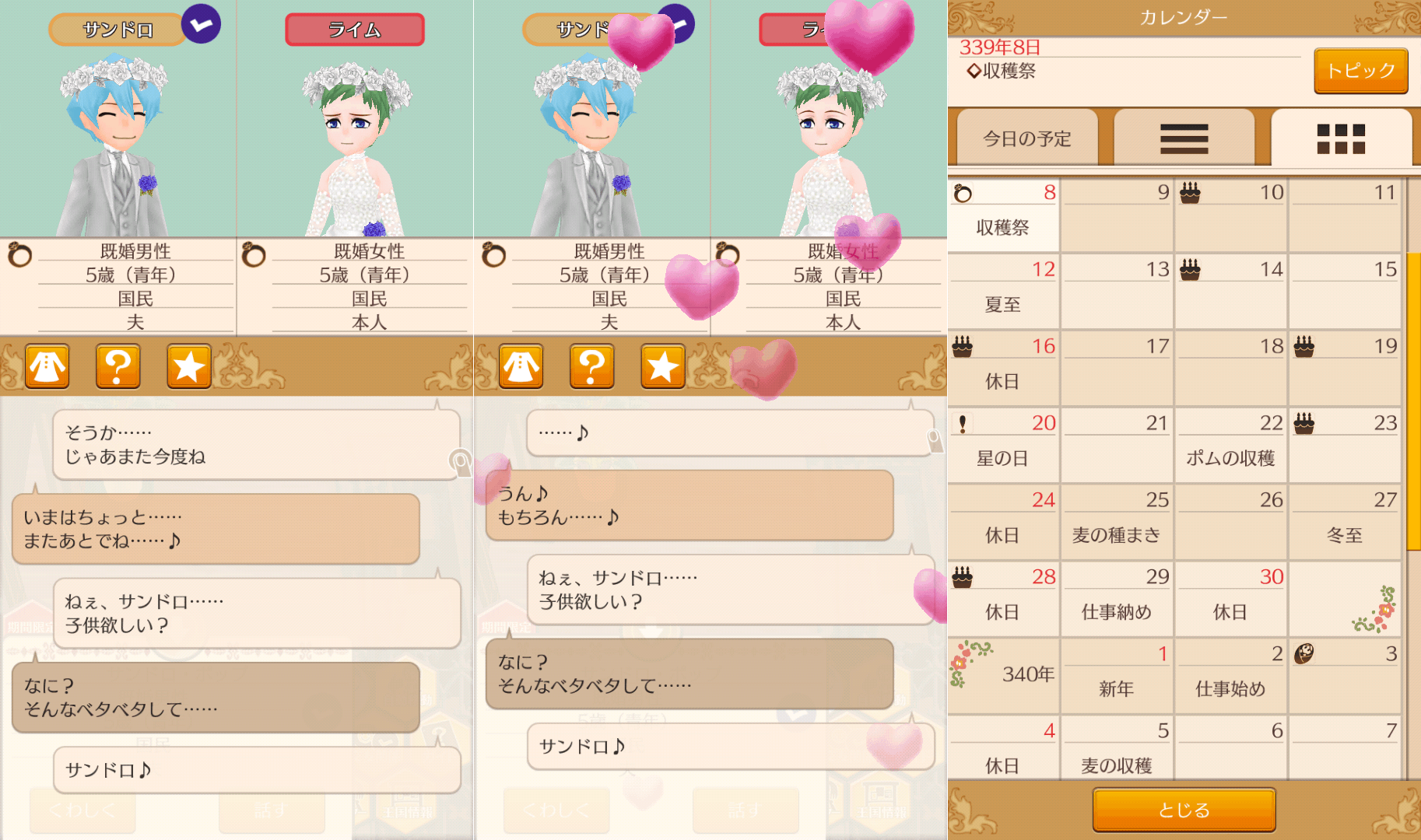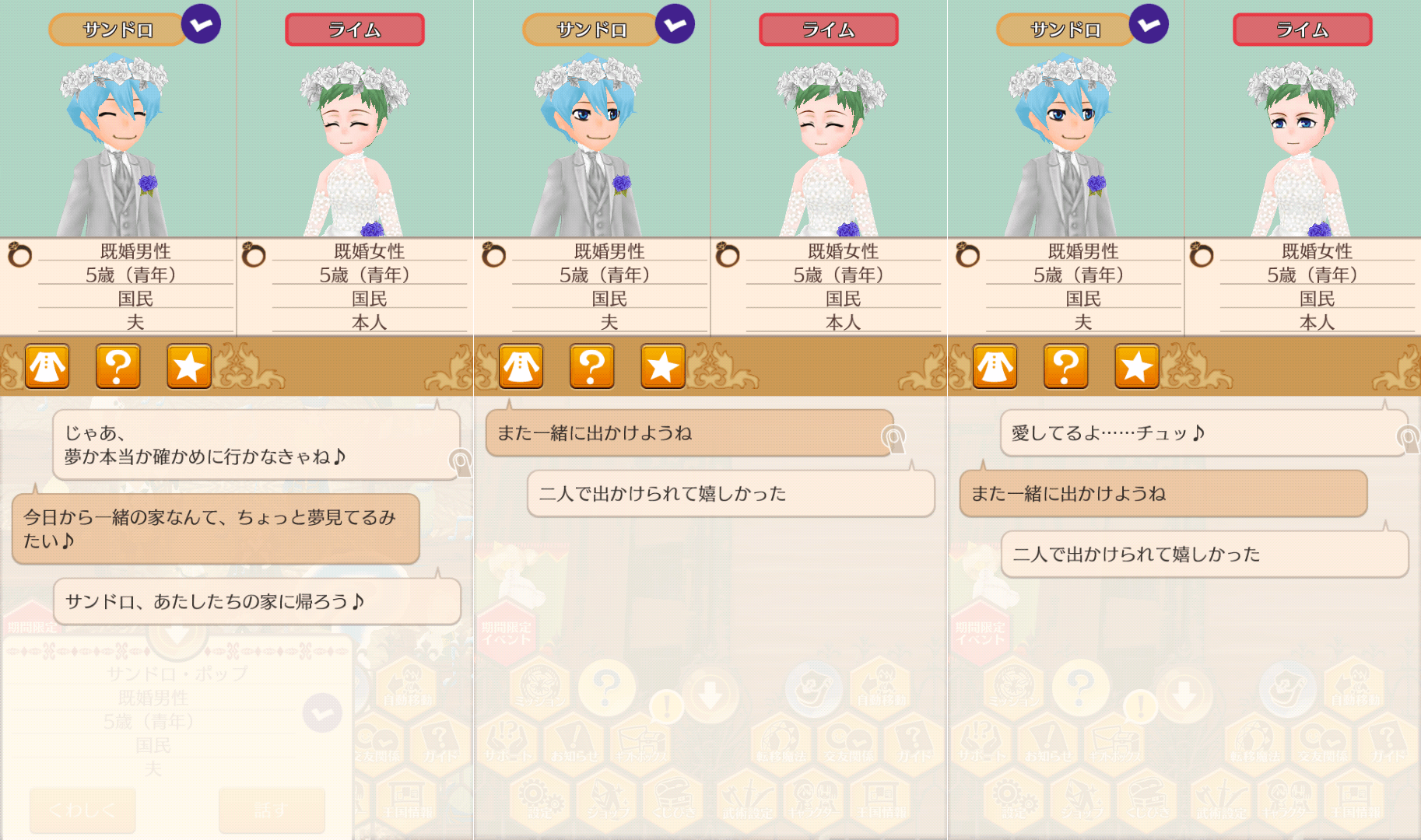 無事結婚式が終わり、サンドロくんと自宅に。帰宅後は相変わらず、デート帰りのときと同じ会話なので、修正欲しいところ。