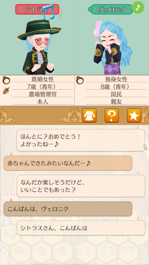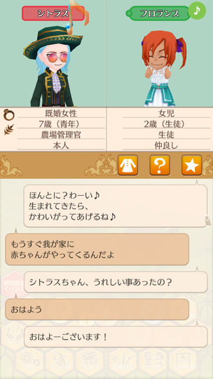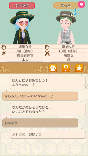 何か一発で子作り成功してしまって成功した方のスクショ撮り損なってしまったのですが、第一子は来年の4日です。