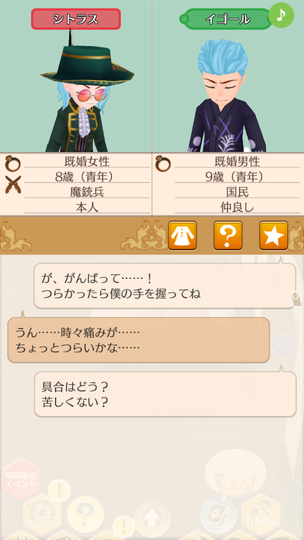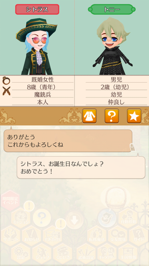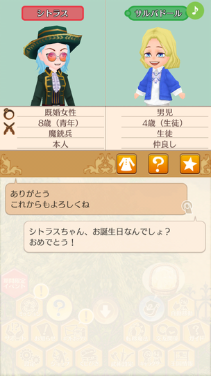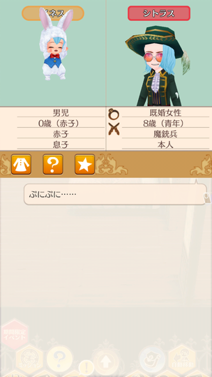 第一子は現時点でわかる顔の遺伝系統に加え、性格もフョードルくんと完全一致とうことで、フョードルくんみたいな子が来年起きてくる模様。そしてかーちゃん呼びなので、実にシトラスちゃんの子どもらしくもあります。青髪増やすためなるべく多く子どもを産みたいので、第一子には引き継がないはず、ということで、システム命名のイネスくんです。最大数子ども産んだ上で、イゴール・ヴェロニク夫婦の第二子あたりと結ばれるタイミングの子に引き継ぎたいところ。加えてもう一つ目標があるのですが、それについてはまたそのうち。