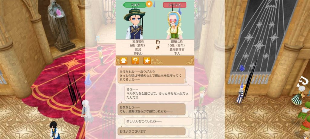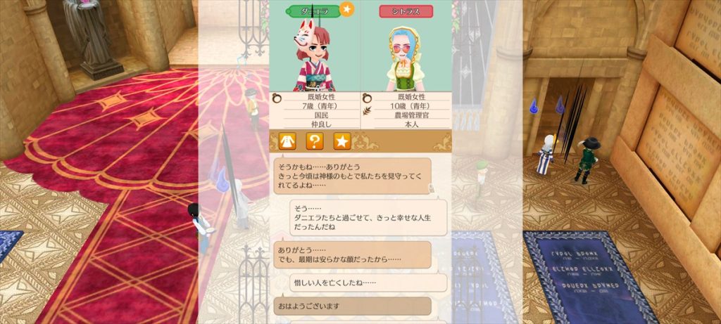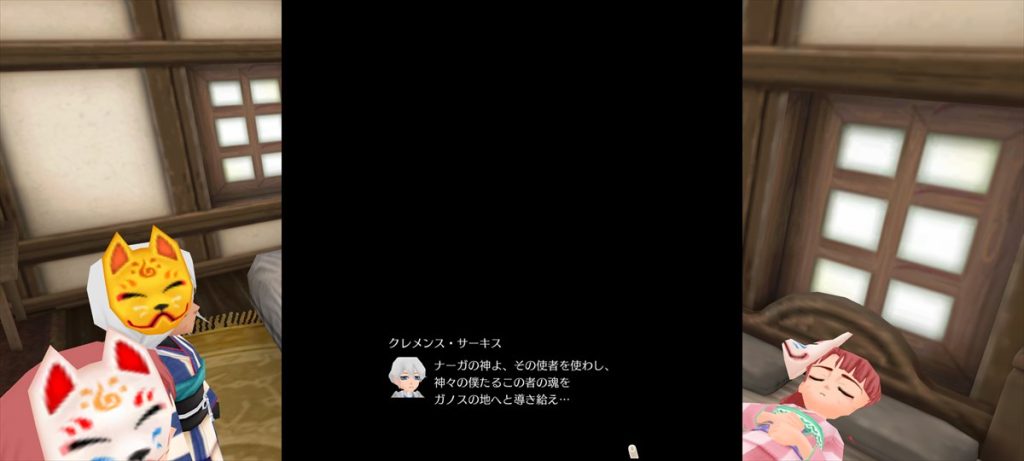 看取り役がクレメンス神官だったので、見送りのセリフは無しになった模様。もう少し長生きしてほしかったですけど、仕方なしです。ガノスからみんなを見守ってください。