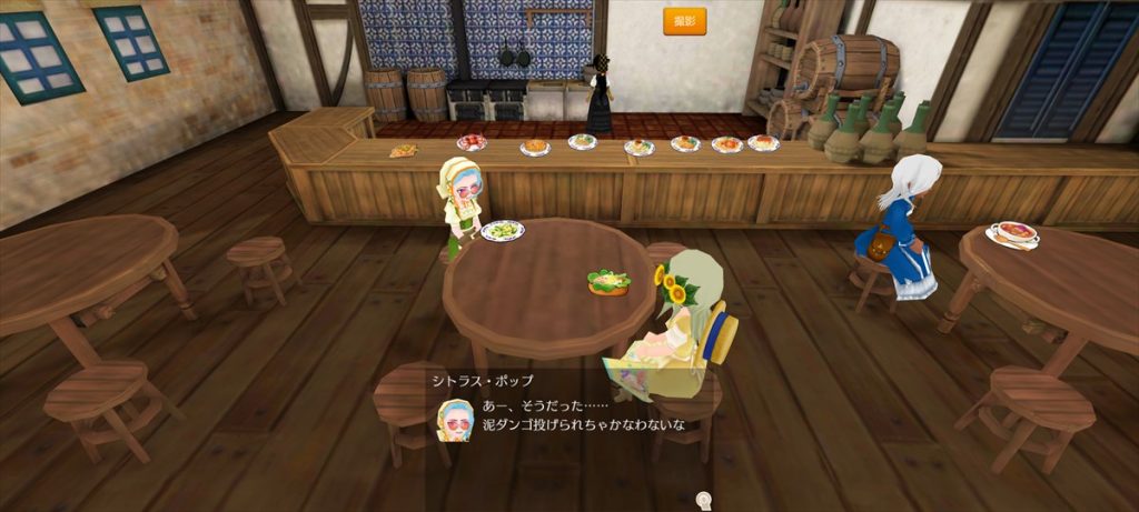 お菓子の仕入れはドーナツ屋さんでどうぞ。噴水広場にいるから、酒場へのお出かけは楽。