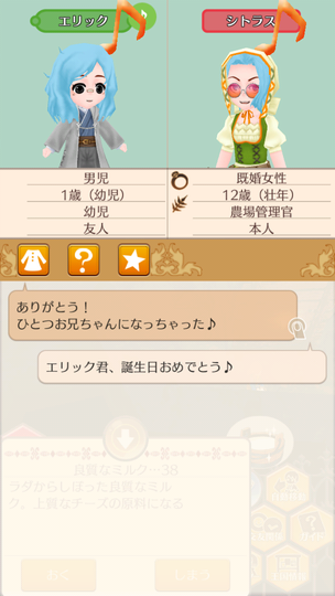 イクスくんが男の子だったので配偶者候補にはなりませんでしたが、お父さんのフェオドールくんそっくり。年末のヴェロニクちゃんの子が女の子だったら、エリックくんとジェマちゃんで付き合ってもらうかな。