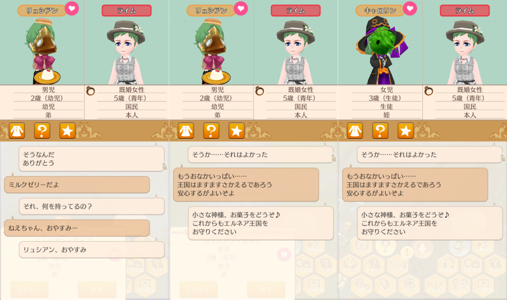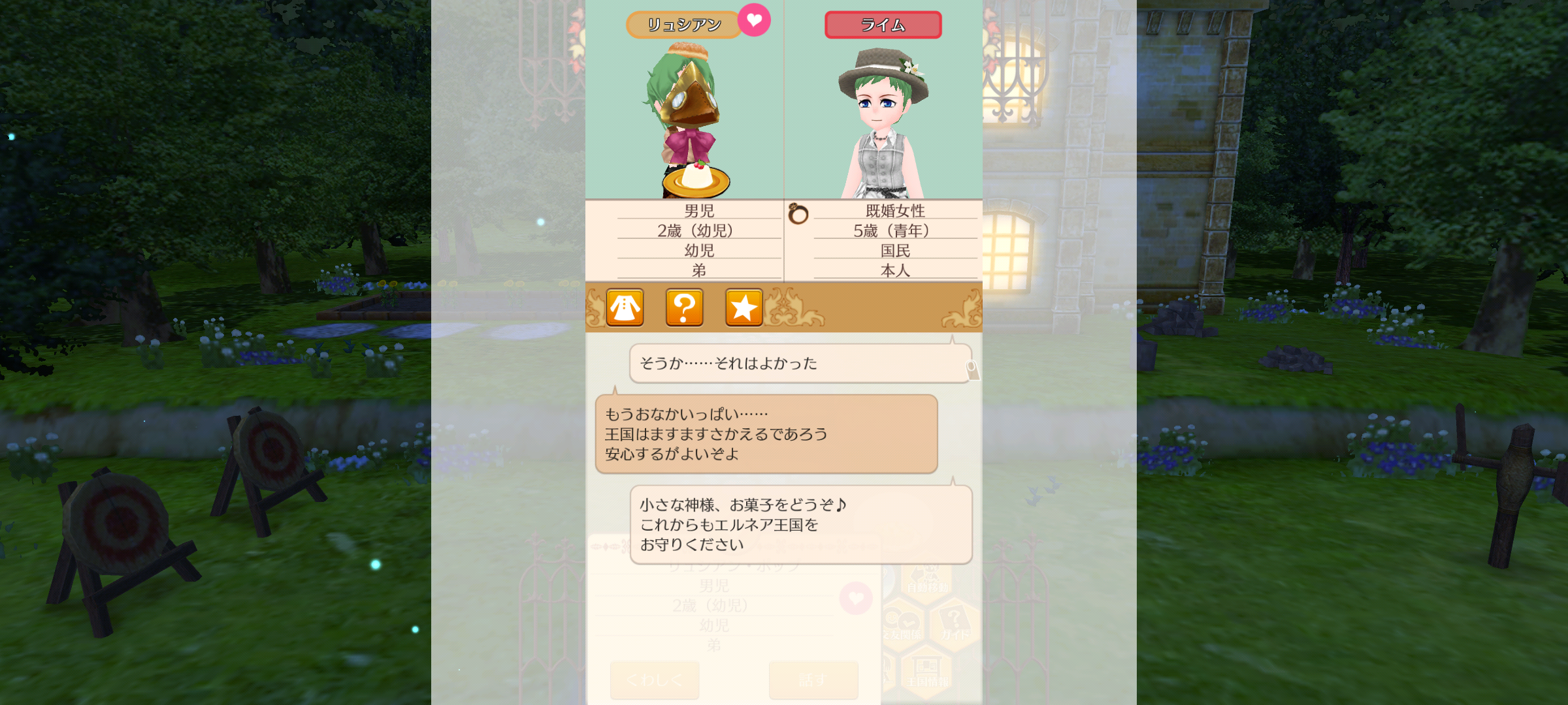 食べきれないミルクゼリーを持ち歩いてたリュシアンくんもキャロリンちゃんもごまんぞくで、星の日終了。