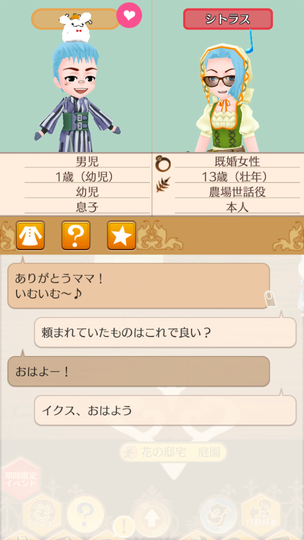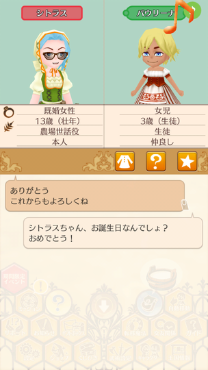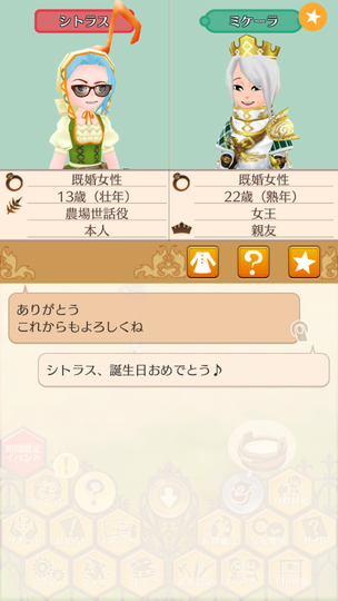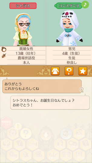 シトラスちゃんの誕生日の3日から。 シトラスちゃん13歳の誕生日 ちなみにそっくりなジェマちゃんも誕生日は同じ3日。 誕生日とか関係なく滝に行きたいイクスくん イクスくんと春の滝 首かしげるイクスくんかわいい。 みんなにお祝いしてもらう誕生日 陛下もお祝いしてくれました。 イクスくんにもお小遣いといむぐるみ いむいむ~♪かわいい。 4日はイネスくんの5歳の誕生日 来年はいよいよ成人ですね。 やっぱりゆーじゅーふだんなイネスくん 鏡見てるイクスくんかわいい