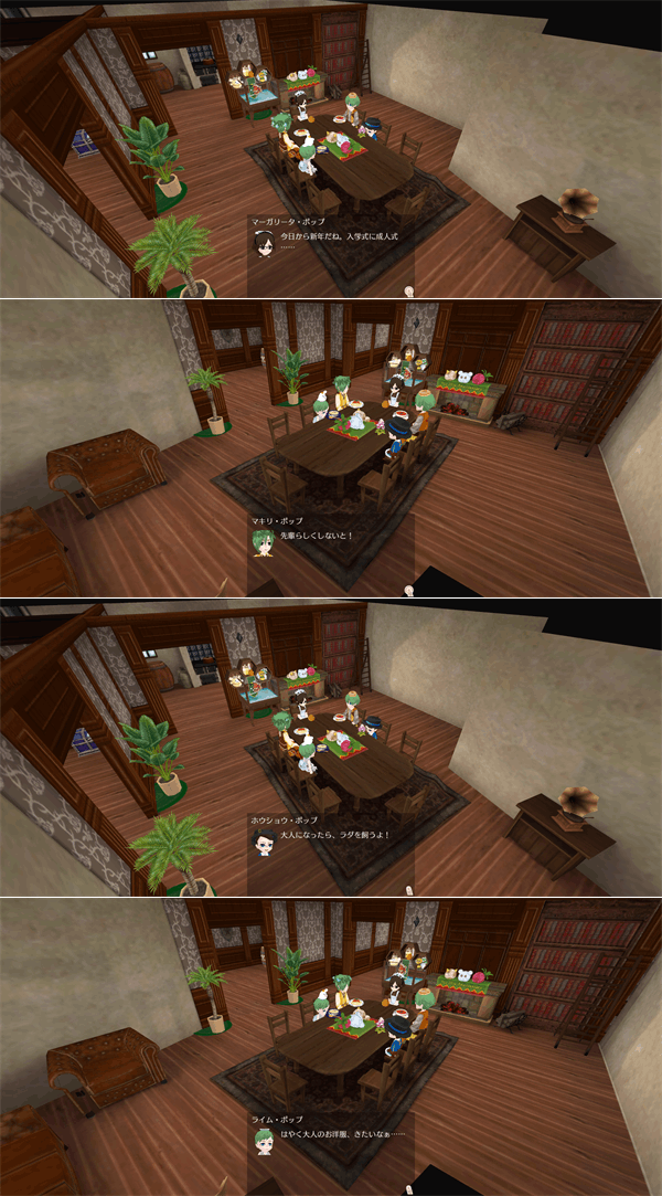 337年成人式です。このために横画面にしたと言っても過言ではないです。いつもはチラリポジションのホウショウくんがバッチリ映ります!…まあSwitch版で見ればいいんじゃないの?という気はしなくもない。