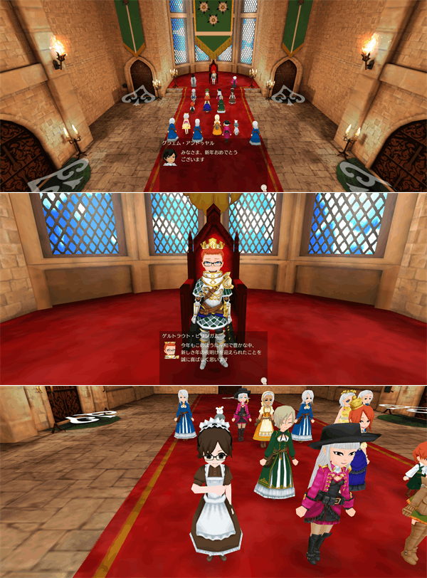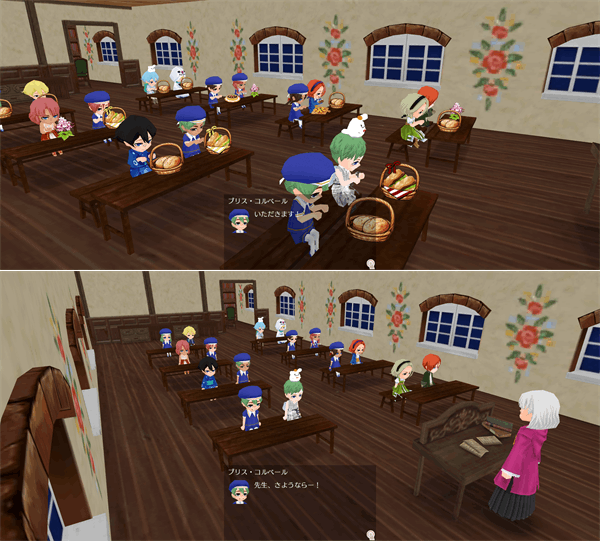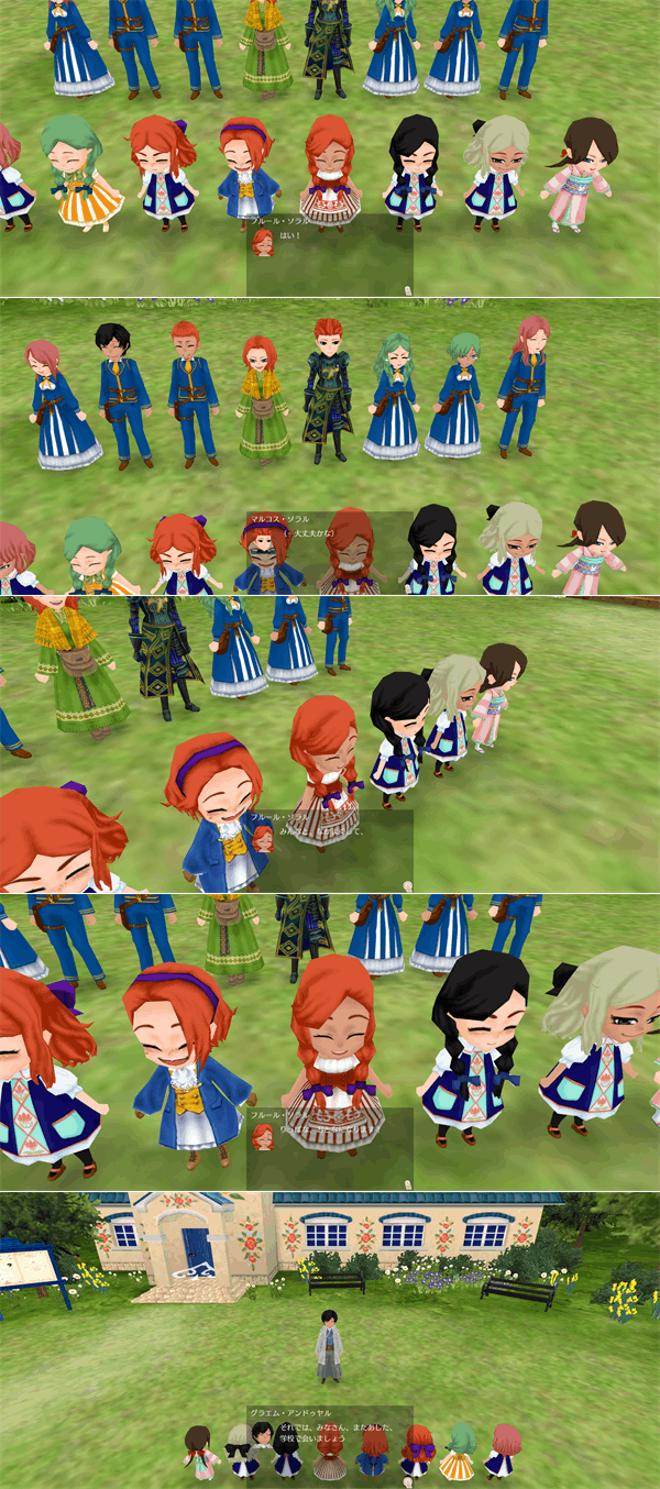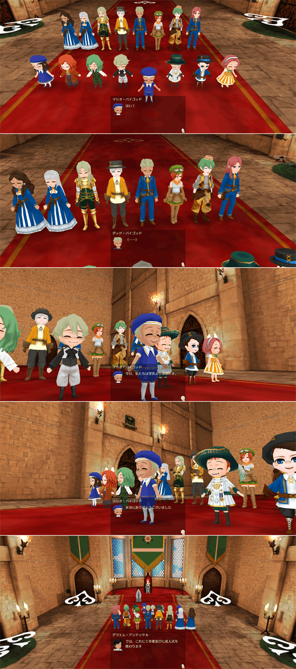 引き続いて337年入学式。こちらは左端の子が見切れちゃいますね。PCは大体右から2番目なので大丈夫なはず。今年の代表は、現代マルコスくんの子フルールちゃん。