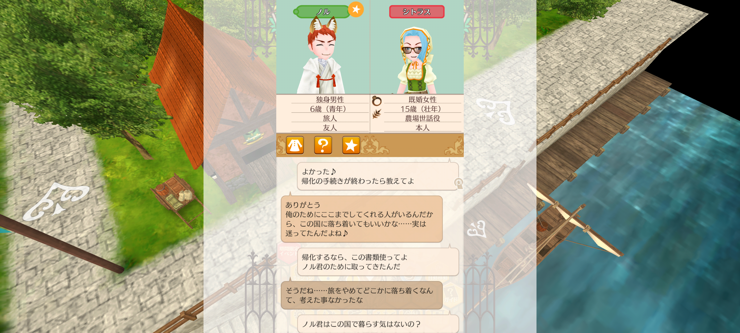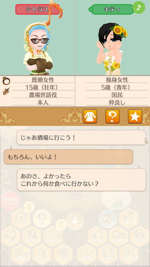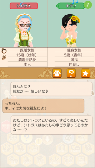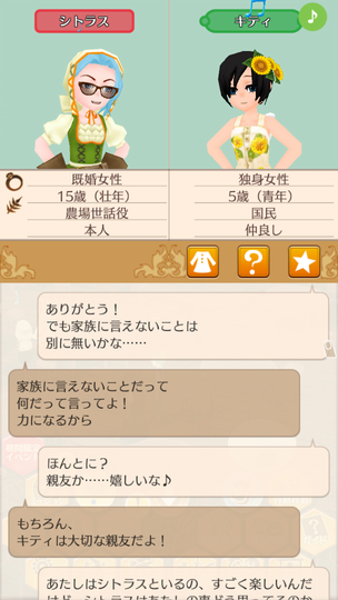 やっぱり色合いがオレンジ髪と合いますね。衣装を着せるために友人にはなりましたが、基本的に恋愛関係にはノータッチです。さて誰と結ばれるか。個人的には同じオレンジ髪のデイジー元王女と結ばれて欲しいところ。王族制限も外れてますし。