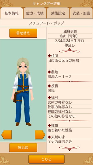 現代マルコスさんの子フルールちゃんに恋人できていました。お相手のスチュアートくんはポップ姓ですが、10代目の妹ミュリエルさんの末裔ということで、昨日AIチャットくんが親戚判定したヘレナさんと同じくらい遠い親戚度。