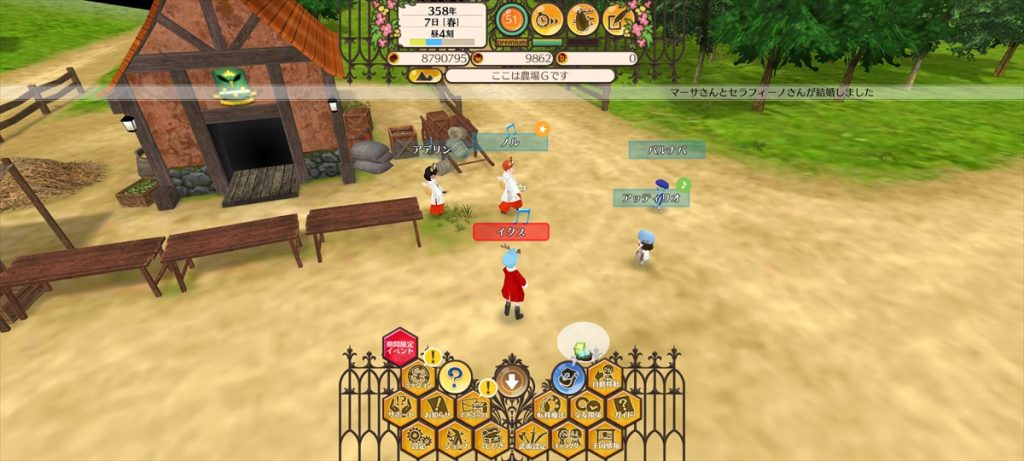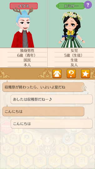 これで4箇所一通りまわったかな。これでプロポーズフラグは立ちましたが、今プロポーズすると3代連続の収穫祭挙式に。3代連続なのはいいとして、収穫祭の結婚記念日は収穫祭が忙しくて忘れがちなので、収穫祭挙式は避けようかと。プロポーズも収穫祭と重なると忙しそうなので、9日のプロポーズを狙います。