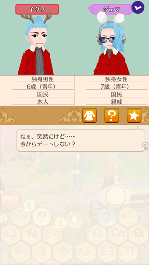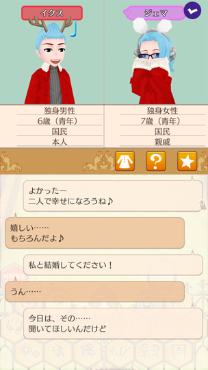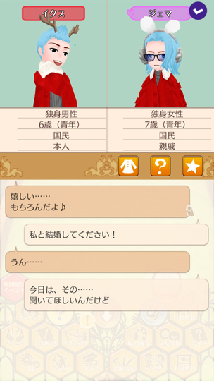 ジェマちゃんに先手取られてしまいました。実はこれまでのデートでは、デート後は全てこちらから話しかけておうちデートしてたので、初めての話しかけがプロポーズという。かつてのチョリシーズといい、エルネアNPCは予想外の行動で驚かせてくれます。