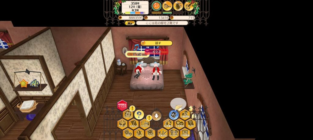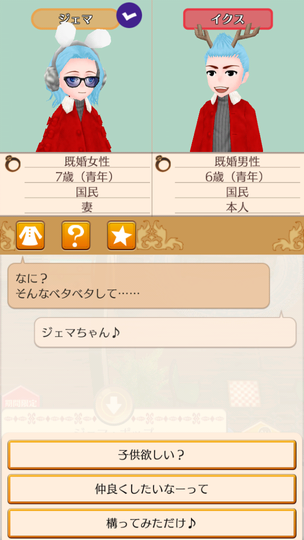 まあ予想通りではあるのですが、完全に拒否されますね。親が妊娠中もしくは親の子が赤子状態だと子作りはできないようです。Wikiでは「王太子、および山岳兵団家系の長子で確認されている」とあったので、邸宅でも確認してみた次第。ということで、アルマンドくんが起きてくる23日まで第1子はお預け。