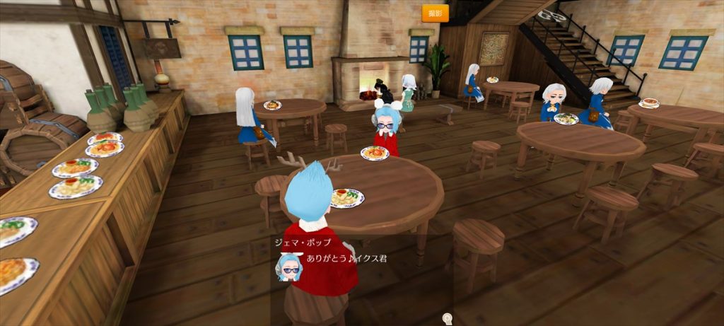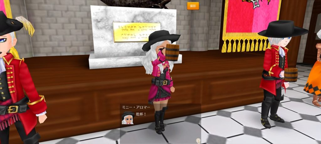 お馴染みの乾杯に命の次に大事な報酬にカメラ目線に。