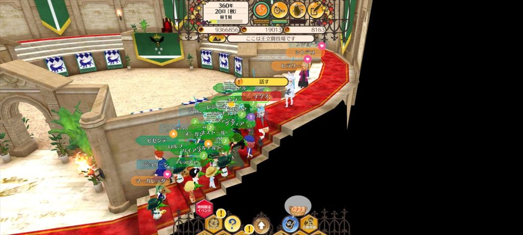 お店前でもわちゃわちゃしてたけど、いつもの闘技場でもわちゃわちゃ。