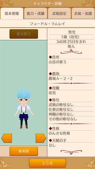 25日に、未来のシトラスちゃんの配偶者候補ヒョードルくんが起きてきました。衣装はこのあと何度か試行錯誤入ります。髪型も将来オールバックのままかどうするか悩み中。